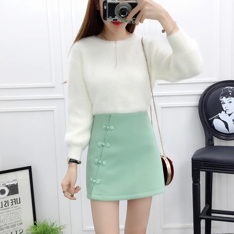 This item is afterward has features of A Woman Sweater Clothing Set New Autumn Winter Pullovers White Knitwear Top Buttons Bust Skirt Suit.